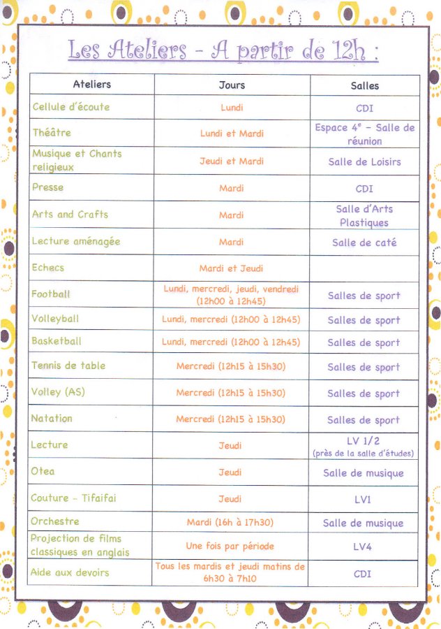 | Ateliers de midi (gratuit) (posté le 10/09/2013 à 19:35) |