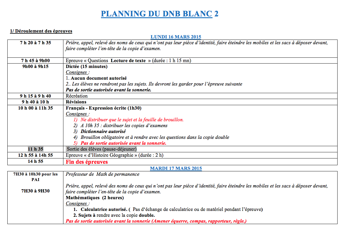Planning du test commun des classes de 5e de ce Mardi 21 Avril. Tous les élèves de 5e finiront à 14h45 quelque soit l'emploi du temps.