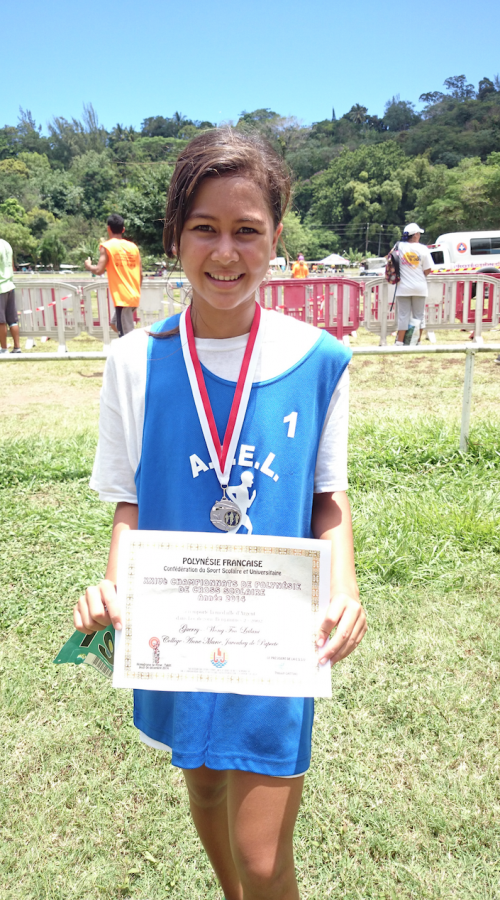 Les résultats AMJ du cross de Polynésie sont les suivants : - Médaille d'argent en Benjamines 2eme année avec Leilani GUERRY WONG FOO - Médaille de bronze en Minimes Filles avec Mathilde SOULON - Médaille d'or Par équipe en Benjamins 2 avec : Takai SCHMIT, Matahiarii BODIN, Jaurick CELLA, Dylan DEVEMY, Rayan ADAMPOT, Idris BRAULT et Manuarii LAFILLE - Médaille de bronze par équipe en Benjamines 2 avec : Leilani GUERRY WONG FOO, Poerani BERTRAND, Kitana PENI-MARAE, Melissa HAMELAIN, Wei Lin PELLERIN Félicitations à vous tous !