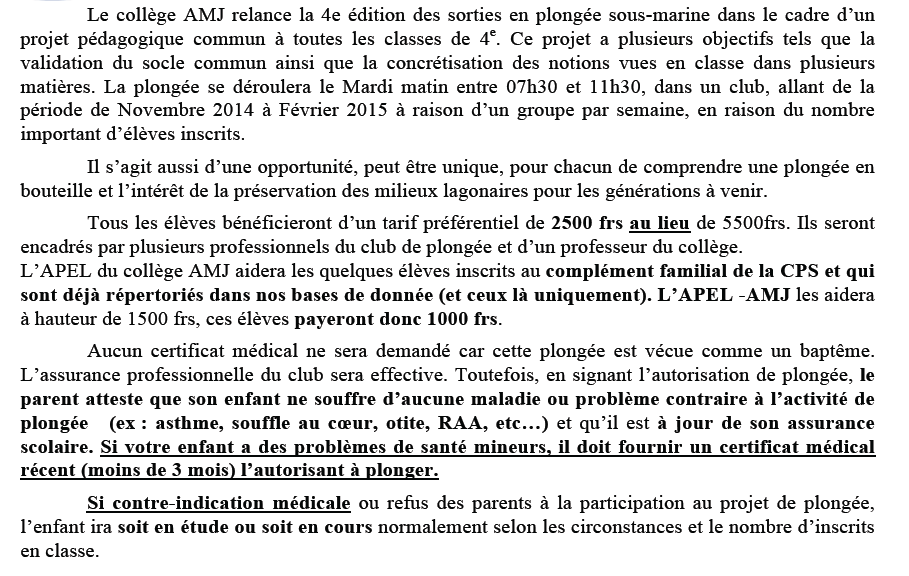 | Projet Plongée 4e (posté le 13/10/2014 à 19:59) |